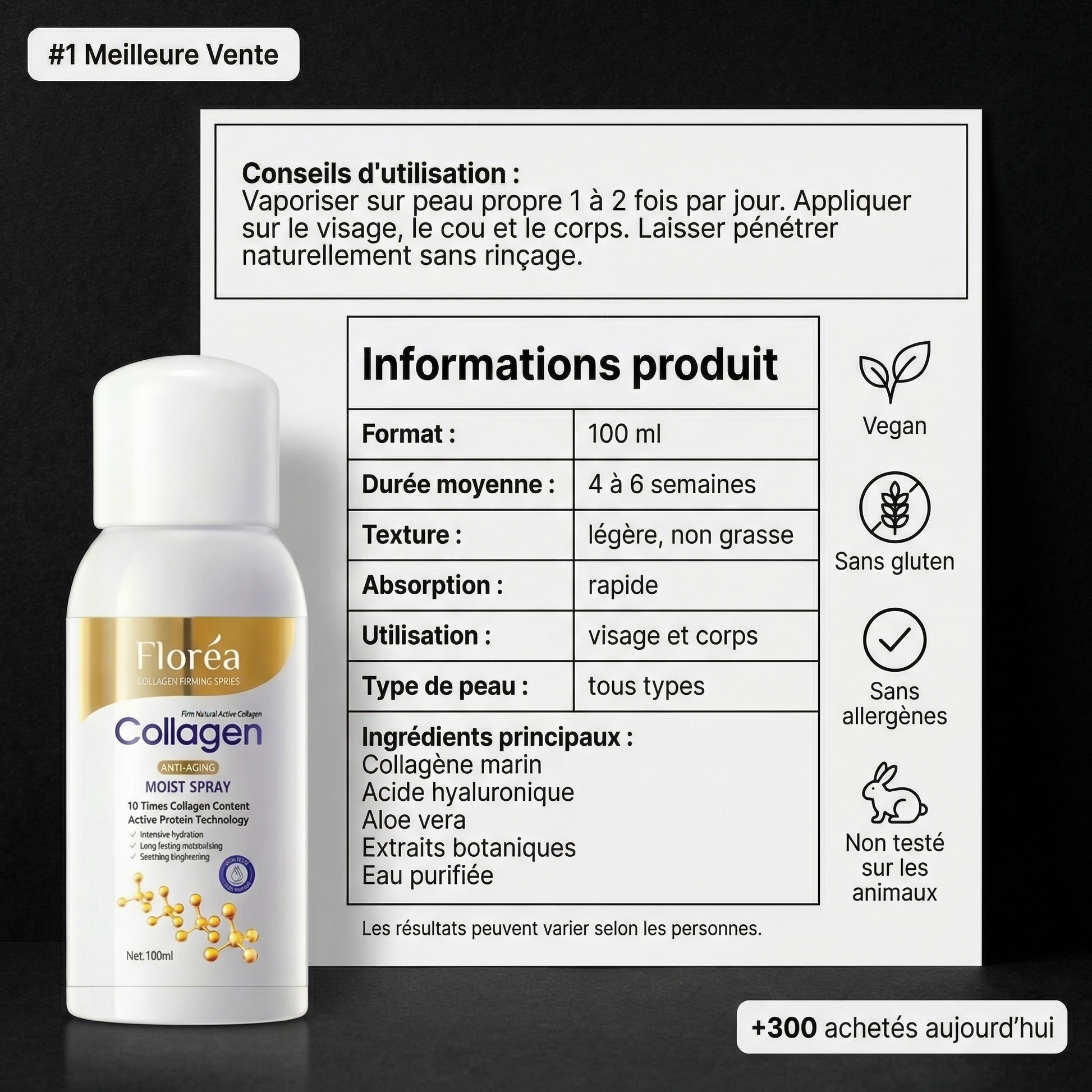 Fini les couches de crème et les rituels interminables. Floréa s’utilise en quelques secondes, le matin ou avant une sortie. Son format spray 100 ml permet une application uniforme sur le visage et le corps. Simple. Rapide. Moderne.